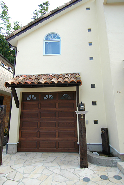 愛車のクラシックカーが入るガレージは、 ビターチョコレートのような可愛らしさをプラス。